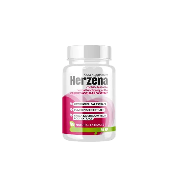 Herzena è costituito da una combinazione di estratti naturali, tra cui: inulina derivata dalle radici di Helianthus tuberosus, estratto di foglie di biancospino (Hawthorn), estratto di boccioli di chiodo di garofano (Syzygium aromaticum), estratto di semi di zucca (Cucurbita moschata) e estratto di corpo fruttato di Chaga (Inonotus obliquus). Questi principi attivi sono scelti per le loro proprietà benefiche sul tono vascolare, sulla circolazione sanguigna e sulla regolazione della pressione arteriosa, senza effetti farmacologici diretti.