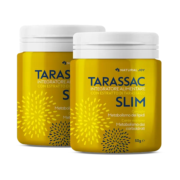 Tarassac Slim è il nome commerciale di una polvere destinata allâimpiego come integratore alimentare per il supporto alla perdita di peso. Classificato come preparato in polvere per uso dietetico, viene formulato per favorire il metabolismo e lâeliminazione delle tossine, contribuendo a un percorso di dimagrimento naturale e bilanciato. Ă destinato a soggetti adulti che desiderano integrare la propria dieta con un prodotto specifico per il controllo del peso corporeo.