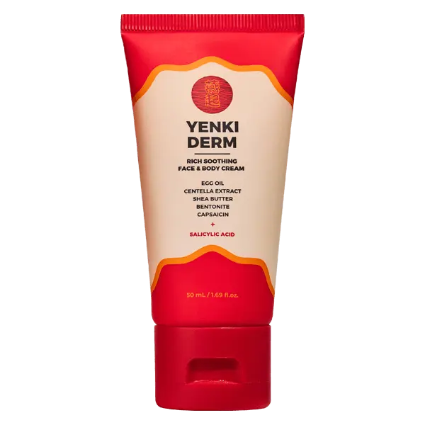 La formulazione di Yenki Derm comprende un insieme di principi attivi e componenti ad azione emolliente, antinfiammatoria e lenitiva. Tra gli ingredienti principali si annoverano lâolio di uovo, la bentonite, lâestratto di Centella Asiatica, lâestratto di Chrysanthemum indicum, la cera dâapi, il burro di karitĂŠ, lâacido hydroxyphenyl propamide obenzoico e lâacido salicilico. Questi componenti sono scelti per le loro proprietĂ di supporto alla barriera cutanea e di riduzione dellâinfiammazione, senza effetti farmacologici sistemici.